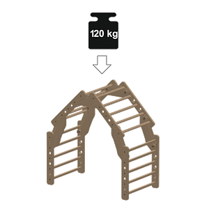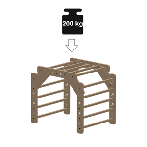 Ein kleines Faber-Kletterdreieck weisst eine Traglast von 180 kg auf! Eine Faber-Brücke ist mit stolzen 200 kg belastbar! Das Häuschen ist trotz schrägen Flächen auf zirka 110 cm Höhe immer noch mit 120 kg belastbar und eine kleine Sprossenwand hält ohne Probleme 150 kg aus! Mehr dazu in der Bedienungsanleitung.