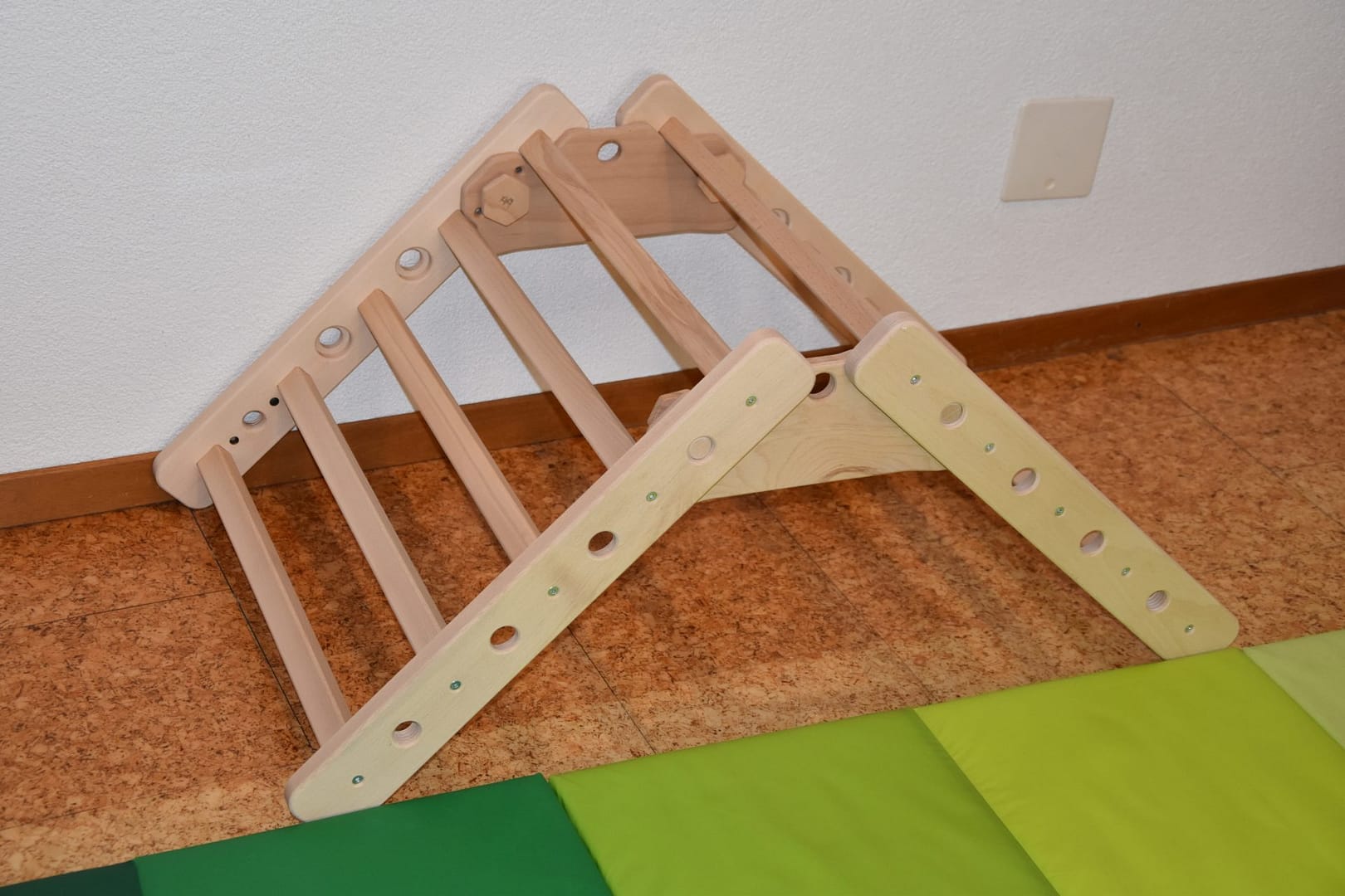 Mit den von uns ausgewählten Basisbauteilen hast du sehr viele Möglichkeiten Bauten für dein Kind zu bauen. Für die Kleinsten kannst du sehr niedrig bauen, Bauten die auch kriechend zu erklimmend sind. Für grössere Kinder sind die Brücke, das Häuschen, das gross Kletterdreieck wunderbare Elemente zum Klettern und auch für Rollenspiele.